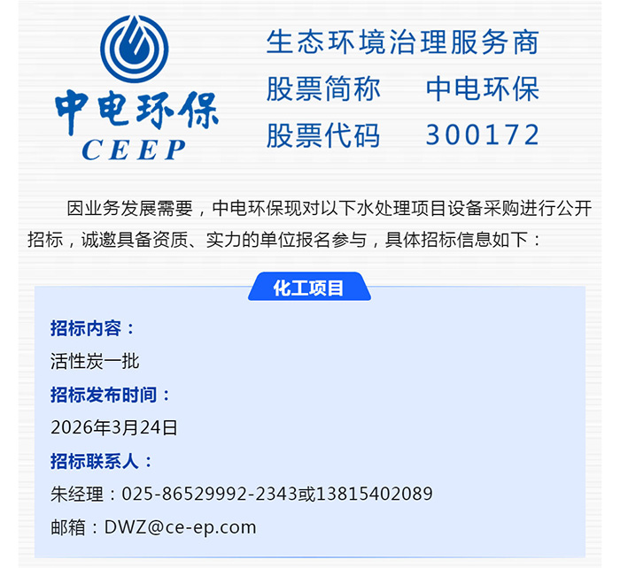 【招標-26-08期】中電環(huán)保誠邀參與:水處理項目設備采購公開招標